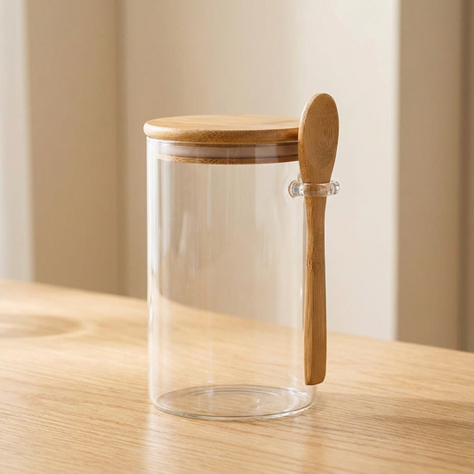Jetzt reduziertVorratsglas mit Bambusdeckel und Löffel