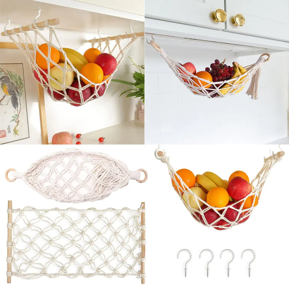 Entdecken Sie das praktische und zugleich attraktive hängende Obstnetz, das Frische bewahrt und Ihre Küche ordnet.