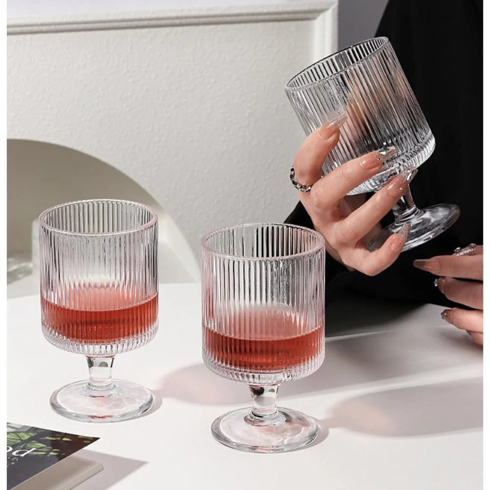 - Design: Vertikale Streifenstruktur, dickwandiges Glas