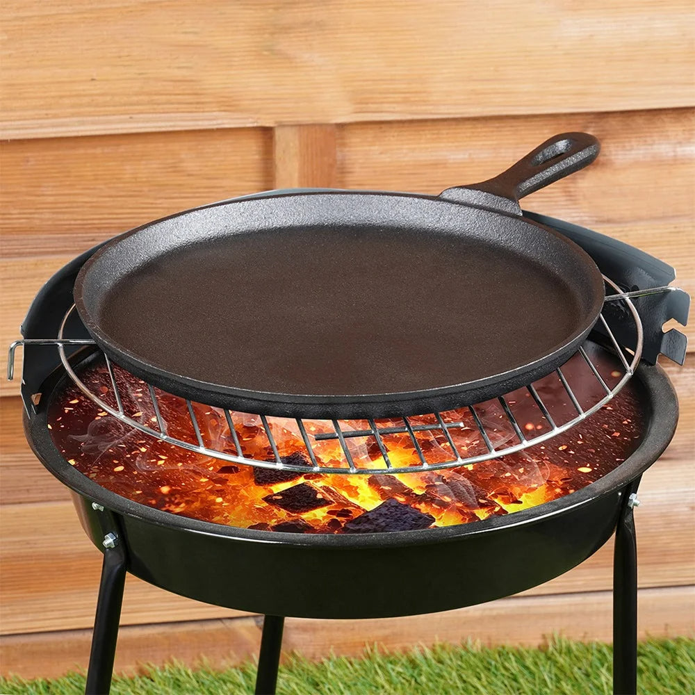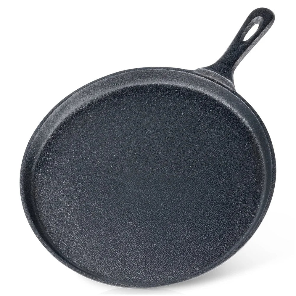 Erleben Sie mit unserer strapazierfähigen Gusseisenpfanne eine gleichmäßige Wärmeverteilung für gelungene Gerichte – ob Pfannkuchen oder Pizza.