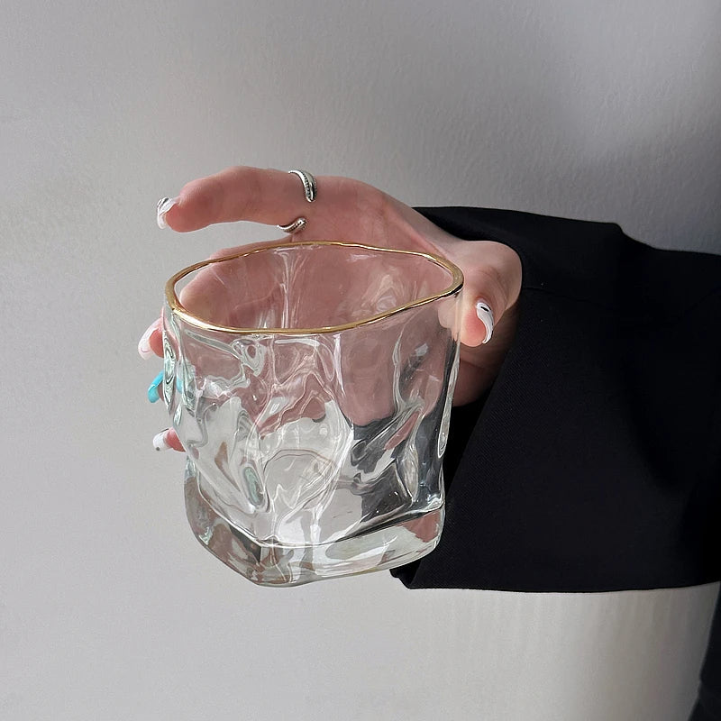 - Einzigartiges Design mit unregelmäßiger Form und edlem Goldrand