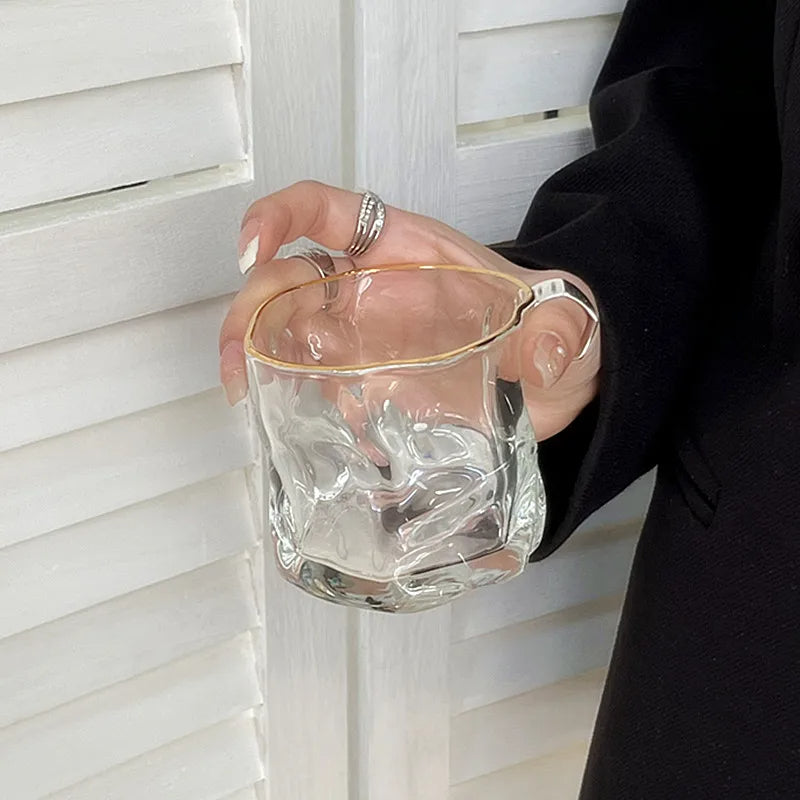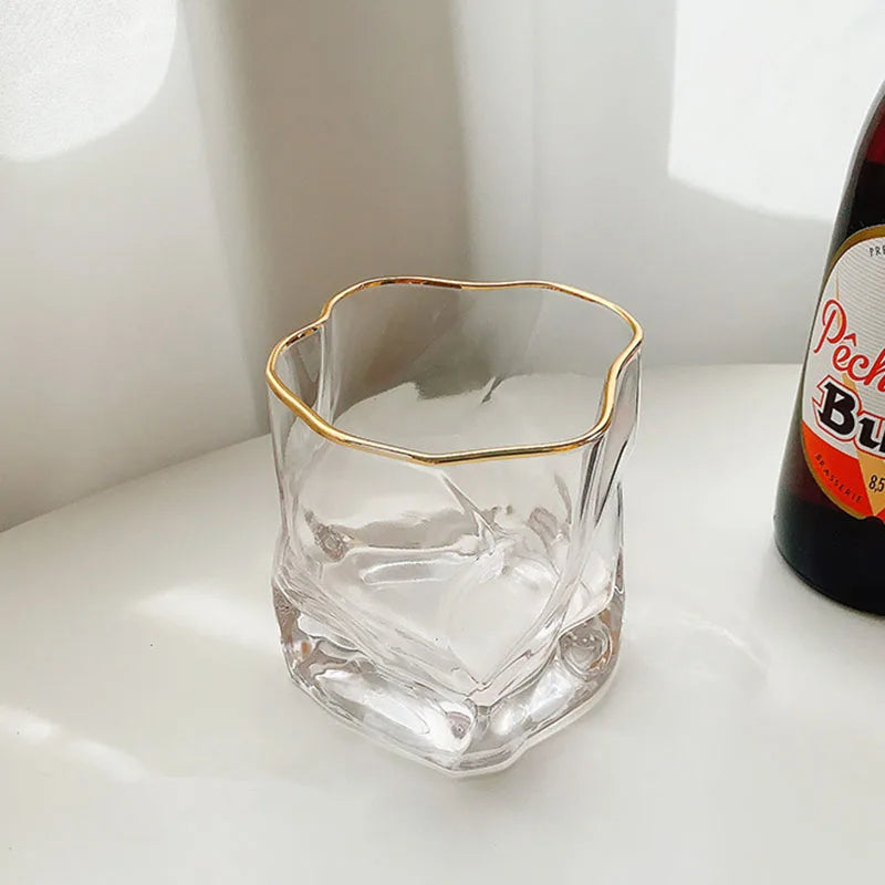 - Design: Unregelmäßige Form mit Goldrand