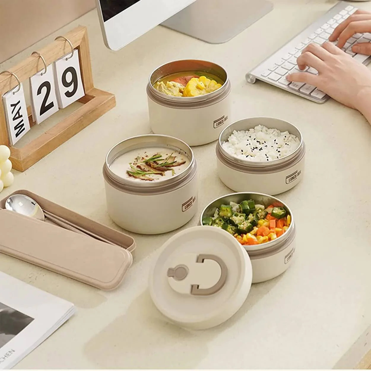 Bestellen Sie jetzt Ihr isoliertes Lunchbox-Set und genießen Sie frische Mahlzeiten jederzeit und überall.