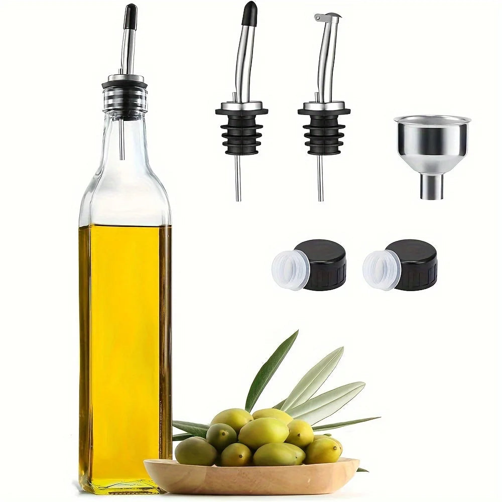 - Lieferumfang: 1 Glasflasche, 1 Trichter aus Edelstahl, 2 Ausgießer, 1 Schraubverschluss mit Innendichtung