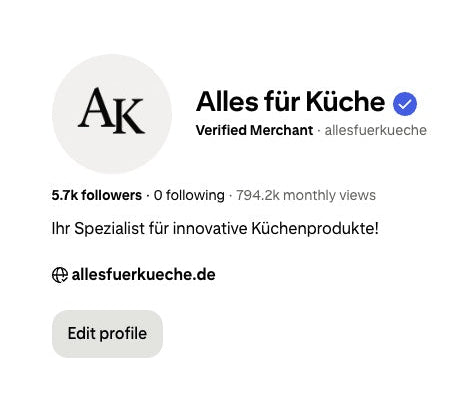 Mit über 5.7k Followern und Hunderttausenden monatlichen Aufrufen gehört Alles für Küche zu den meistgespeicherten Küchenmarken auf Pinterest. Unsere Ideen, Produkte und Inspirationen begeistern täglich eine große Community.