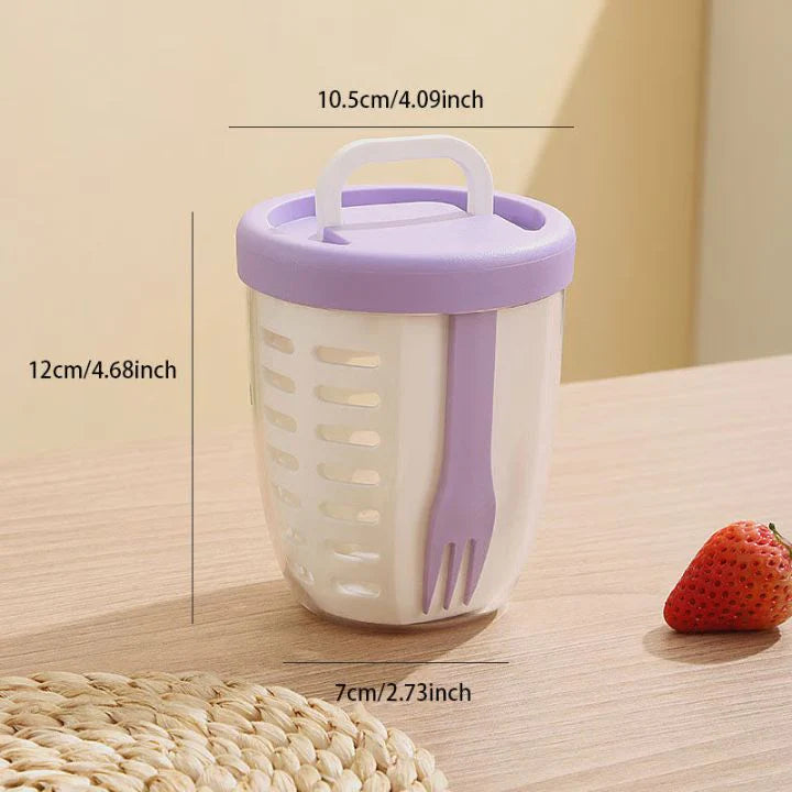 Erleben Sie den Komfort eines auslaufsicheren und funktionalen Snackbechers, perfekt für Ihren aktiven Alltag.