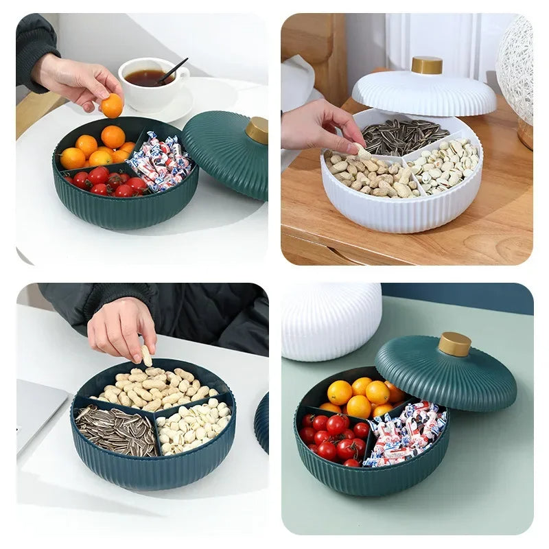 Organisieren Sie Ihre Snacks praktisch und ordentlich mit dieser eleganten Servierschale mit vier separaten Fächern.
