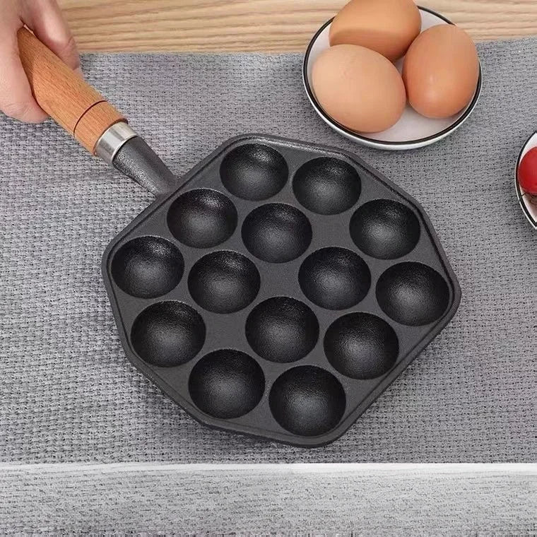 Takoyaki-Pfanne | 14 Mulden | Gleichmäßige Wärmeverteilung | Gusseisen